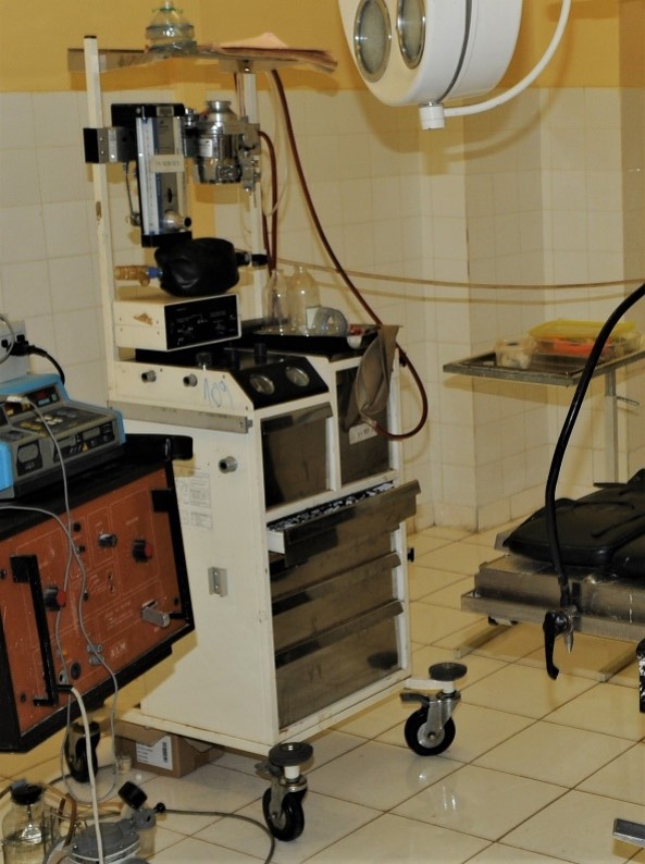 Modified, unsafe anaesthetic machine with no patient monitoring.