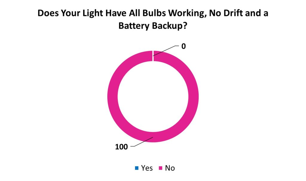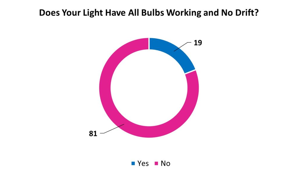 When considering if the operating lights have all bulbs and working as well as having no drift, only 19% are suitable. The fact that many lights also drift means the surgeon will be distracted trying to manoeuvre the operating room light into the correct position. This is far from ideal for conducing safe surgery.